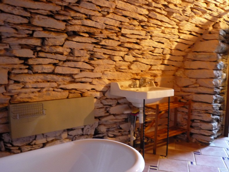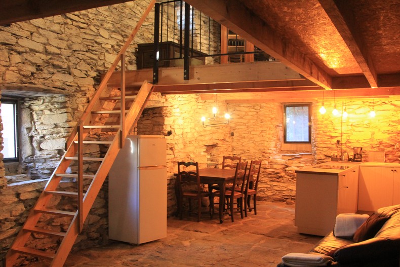 letzte Bauernfamilie hinterlassen hat. So gibt es viele unverputzte Schiefersteinmauern, Steinfußböden und freiliegende