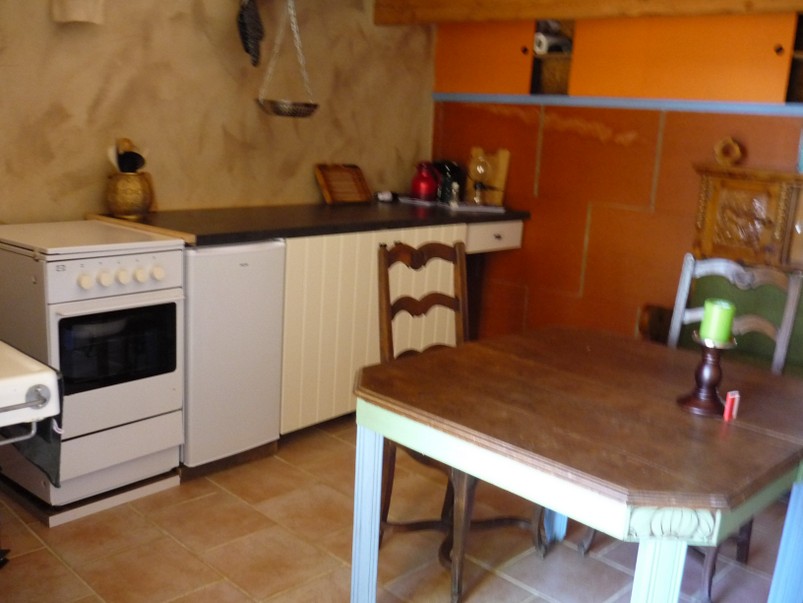 Im Erdgeschloß befindet sich eine kleine Küche mit Tisch und Stühlen, sowie eine kleine