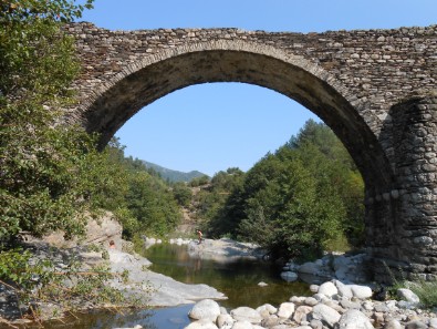 herrschen Kastanienwälder vor. Bis man ein Flüßchen erreicht.